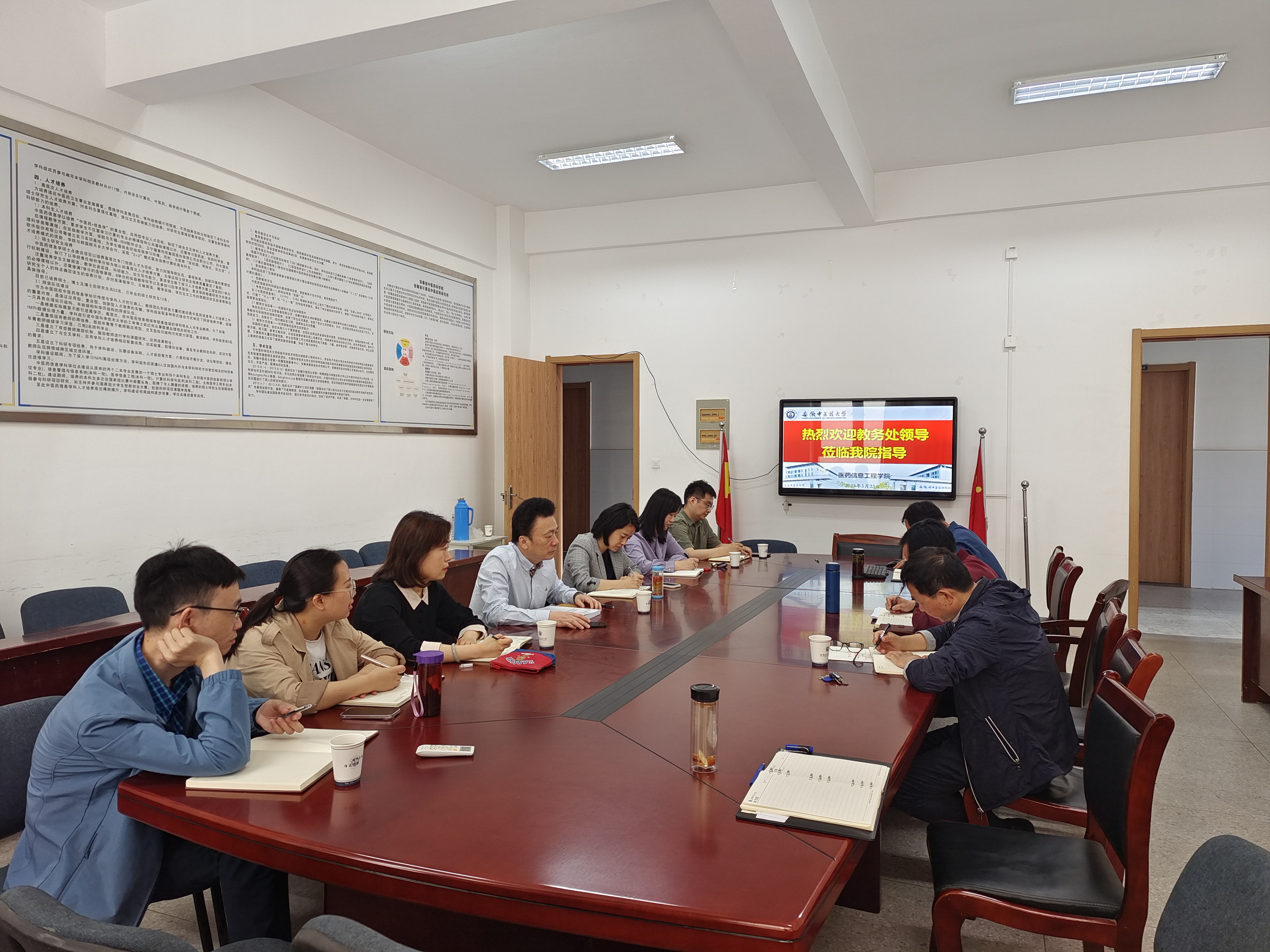5月23日,学校教务处王茎处长、副处长张艳春一行7人来学院调研,指导学院本科教育教学审核评估评建工作,学院党委书记吴成海、院长阚红星、党委副书记李亚、副院长阚峻岭及学院教学办参加调研会。